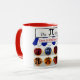 Apple, blueberry, cherry, peach, pecan, pumpkin, strawberry, and sweet potato "pi"s in a bakery window.