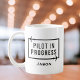Typographie minimaliste, simple, moderne "Pilot in Progress" et image d'avion noir, tasse de café personnalisée. Customisez-le avec le nom ou les initiales de votre élève-pilote. Copyright Soar in Style Designs LLC. Merci de visiter notre magasin !