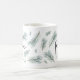 Le design moderne et festif de la tasse de vacances présente "peace" en lettrage manuscrit chic, entouré d'illustrations de chandelles de pin aquarelle en vert d'épinette.