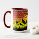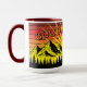 Mug Pine Tree Forest Over Mountains & Retro Sunset