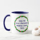 C'est un long, long chemin d'Antarctique voyage de Pôle Nord, mais de Noël à souhaits rapidement et loin. La lettre de ce petit pingouin à Père Noël y arrivera longtemps avant Noël. Partagez de l'amusement de vacances avec cette conception colorée mignonne de pingouin de Noël. Customisez cette tasse en changeant le message dans le domaine des textes, ou partez comme montré. Changez le style, la taille ou la couleur de la tasse pour adapter à votre goût. Un stuffer gentil de bas, cadeau d'amusement, décoration de partie, ou juste une manière d'amusement d'habiller la table. APPRÉCIEZ ! Joyeux Noël !