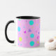 This ceramic mug features a playful neon Memphis geometric retro pattern on a vibrant pink background. With its colorful 80s-inspired shapes, it’s perfect for adding a fun and stylish touch to your morning coffee or tea time.