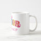 Girly graduation coffee mug for a senior with SENIOR written in colorful varsity letters, with a bow on top with its ribbons curling around the letters. Personalize with the year in a pretty hot pink script.