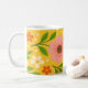 Mug Pink, cream & Orange Flowers with Green Leaves