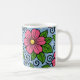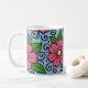 Mug Pink Florals with Green Leaves and Curved Details