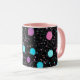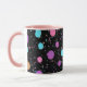 Black background with purple, pink and blue polka dots seamless repeat pattern design