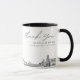 La tasse à café moderne Pittsburgh skyline de préférence cadeau avec le script "merci". La conception présente un croquis étonnant avec la possibilité de customiser vos noms et l'emplacement exact. Entrez l'outil de conception Zazzle pour des personnalisations supplémentaires.