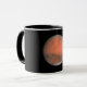 MARS. (Montré en couleur vraie) Mars est la quatrième planète du soleil. Avec un rayon de 4 000 km, Mars est la septième planète de notre système solaire et environ la moitié du diamètre de la Terre. Sa gravité de surface est de 37,5 % de celle de la Terre. La couleur rouille brillante pour laquelle Mars est connue est due à des minéraux riches en fer dans sa régolithe — la poussière et la roche (basalte)* qui recouvrent sa surface. Mars est beaucoup plus froid que la Terre, en grande partie à cause de sa plus grande distance du soleil. Distance moyenne du soleil : 141 633 260 miles (227 936 640 km). En comparaison : 1,524 fois celui de la Terre. La température moyenne est d'environ moins 80 degrés Fahrenheit (moins 60 degrés Celsius). Mars se trouve plus loin du soleil que la Terre, donc la planète rouge a une année plus longue — 687 jours contre 365 pour notre monde natal. Les deux planètes ont des durées de jour similaires, cependant ; il faut environ 24 heures et 40 minutes pour que Mars termine une rotation autour de son axe, contre 24 heures pour la Terre. L'atmosphère riche en dioxyde de carbone de Mars est aussi environ 100 fois moins dense que celle de la Terre en moyenne, mais elle est néanmoins assez épaisse pour supporter le temps, les nuages et les vents. Mars est l'un des corps les plus explorés de notre système solaire, et c'est la seule planète où nous avons envoyé des rovers pour parcourir le paysage alien.