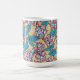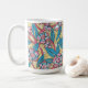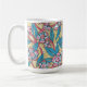 Tasse à café au motif floral exquis, gousses de graines rondes à la menthe et rose pâle, feuilles turquoises en forme de lance et branches roses enchevêtrées sur le champ d'olivier doré. #floralpattern #floralprint #eucalyptusprint #eucalyptus #zazzlemade #tabletop #giftforher #tabletopdéco #tabledéco