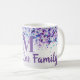 Créez votre propre cadeau personnalisé pour les jeunes mariés ou toute maison. Faites un ensemble de tasses personnalisées pour un chauffage domestique ou toute occasion. Personnalisez cette tasse de peinture avec le nom désiré et le style monogramme initial. Le design artistique est dans les couleurs violet et lavande avec des touches de turquoise.