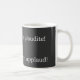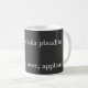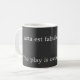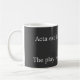 Une tasse grise et blanche avec une expression latine. "On a rapporté que le plaudite de fabula d'est d'acta" est les derniers mots de l'empereur romain Augustus. Il signifie que "le jeu est terminé, applaudissent !"