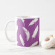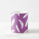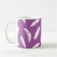 Plumes blanches sur améthyste mauve mauve - dessin graphique mixte de plumes blanches, flottant sur un arrière - plan de couleur contrastée