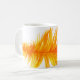 Cette tasse a une jolie plume orange sur laquelle on la voit.