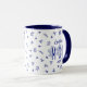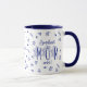 Joli mug bleu et blanc à fleurs pour maman avec la mention "Plus belle maman qui soit !"