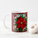 Single Poinsettias Faux Verre Tiré Personnalisable Café Mug Profitez de vos boissons de vacances préférées avec une beauté intemporelle en utilisant cette tasse de café personnalisable en faux verre de Poinsettias Single. Ce numériquement design AI édité dispose d'un poinsettia unique dynamique entouré de riches tons de bijoux, créant l'aspect élégant de l'art en vitrail. Personnalisez-le avec des noms, des dates, ou un message spécial de vacances pour créer un cadeau significatif pour les amis, la famille, les collègues ou les clients. Parfait pour ajouter le charme floral de Noël classique à votre cuisine ou bureau cette saison.