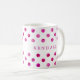 Cette tasse girly est dotée d'un rose chaud, d'une aquarelle en pois sur un arrière - plan blanc, et votre nom dans une couleur rose assortie.