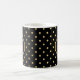 Chic tasse pour la mode, ce design présente un motif pois or sur un arrière - plan noir contrastant avec cadre rond assorti et votre monogramme personnalisé des deux côtés. Modifiez simplement l'exemple de texte avec vos initiales. Assurez-vous de modifier le monogramme des deux côtés de cette tasse. Les couleurs dorées utilisées dans ce design ont des ombres et des surbrillances subtiles pour ressembler à un look métallique brillant.
