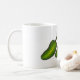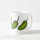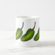 Mug présente une rangée de trois piments jalapeno vert vif. Créé à partir d'une illustration de marqueur originale. Parfait pour votre gourmet préféré ou pour tous ceux qui aiment les choses un peu épicées !