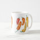 Tasse en céramique avec un motif illustré de poivrons rouges, oranges et jaunes colorés. Des dessous de verre correspondants sont disponibles. Copyright de l'oeuvre : Dominic White. Tous droits réservés.