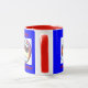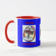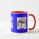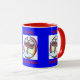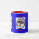 Un panneau du Pôle Nord avec Neige, le pôle et un arrière - plan rond avec cadre bleu carré. C'est clair et coloré sur une Mug de Café (Coupe).