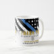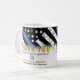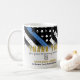 Cette conception comprend un drapeau de la police avec des rayures noires et blanches, et une mince bande de ligne bleue ainsi que du texte en or. Cette tasse est formidable pour remercier et remercier un agent de l'application de la loi, un shérif, un capitaine ou un chef pour leur service.