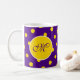 Commencez votre journée avec une tasse de café à pois jaune et violet personnalisée, ajoutez votre initiale à l'avant et votre propre texte à l'arrière