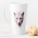 Un mug avec une image représentant le portait d'un félin blanc avec de beaux yeux au regard étrange, son visage se défragmente, elle te fixe droit dans les yeux.