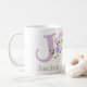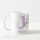 La conception comporte un monogramme et un nom avec des fleurs de chaque côté dans un style pastel à l'aquarelle. L'initiale est la lettre J