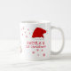 Le premier Noël du Père Noël Feu de neige Bébé Photo Mug. Un beau design de Noël pour bébé avec un chapeau de Père Noël, des flocons de neige rouges et un nom de bébé - personnalisez avec le nom de votre bébé et ajoutez votre photo.