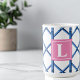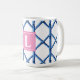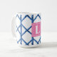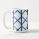 Mug Preppy Blue Trellis Bamboo Motif Monogramme