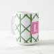 Mug Preppy Green Trellis Bamboo Motif Monogramme