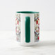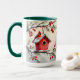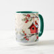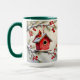 A beautiful Christmas coffee mug with a vintage cardinal sitting on a pine branches covered in snow and red berries.