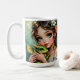 Fairy Tale themed coffee mug. A pretty anime fairy holding her cute baby dragon. A beautiful fairy tale vibe in an enchanted setting ethereal art.