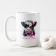 Stylish black and white cow with a cute pink bow- the perfect design for animal lovers who adore a chic and playful touch.