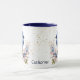 Cette jolie tasse personnalisée présente une belle image d'un Jay Bleu perché sur une branche d'arbre avec de jolies fleurs bleues et roses. L'image est imprimée deux fois sur la tasse, avec votre nom ou autre texte entre eux. Il y a un peu de minuscules confettis en or pour ajouter un peu de brillant. Une jolie scène printanière !