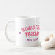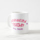 Un dessin de cartoon humoristique avec un jeu de mots qui présente un ours koala mignon vêtu d'un cardigan rose et d'une jupe bleu foncé, tenant un pointeur dans une patte et un livre violet dans l'autre patte. Le texte indique "Enseignant Koalifié" avec deux étoiles violettes pour l'excellence. C'est un jeu de mots pour signifier enseignant qualifié. Personnalisez avec le nom de l'enseignant. En fait un cadeau amusant et adorable pour les enseignants pour la journée d'appréciation des enseignants ou un cadeau d'adieu.