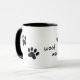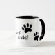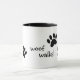 empreintes de pattes avec les promenades de trame ! logo ; tasse noire de sonnerie