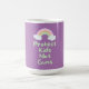 Tasse à café avec texte "Protéger les enfants pas les armes à feu" en vert menthe police de style écriture manuscrite et graphique pastel arc-en-ciel.