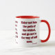Cette tasse à deux tons présente un design typographique qui a une police d'impression Vidaloka avec des lettres de couleur rouge, un contour noir affichant le verset "Proverbes 4:14" de la Bible KJV sur un arrière - plan blanc dans ce thème basé sur la foi. Ce verset fait référence au 4e chapitre du Livre des Proverbes qui montre le 14e verset de ce thème de citation de l'Écriture biblique de la Bible du Roi Jacques. La jante et la poignée sont émaillées dans des couleurs assorties disponibles en 11 onces ou 15 onces de micro-ondes de taille et lave-vaisselle en céramique de construction sécuritaire.