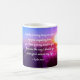 Belle tasse représente un lever de soleil extraordinaire au-dessus de l'eau et présente Bible Verse Psaume 143:8, "Que le matin m'apporte la parole de votre amour indéfectible, car j'ai mis ma confiance en vous. Montre-moi la façon dont je devrais aller pour toi, je confie ma vie."