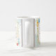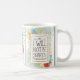 Coffee Mug avec citation inspirante Écriture représente une belle aquarelle florale design moderne avec des fleurs simples rose, bleu et jaune. Il présente une Bible Verse Psaume encourageante 16:8, "Je ne serai pas secoué." Le côté gauche a le verset entier, "Je garde toujours mes yeux sur l'Éternel. Avec lui à ma droite, je ne serai pas secoué."