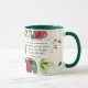 Une tasse à café à écritures inspirantes dépeint une belle aquarelle fleurie avec des fleurs et des feuilles de trèfle rouge, rose et vert. Il présente la Bible Verse Psaume 37:4, "Ravissez-vous dans le Seigneur et il vous donnera les désirs de votre coeur."