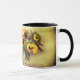 Citation inspirante tasse de café dépeint une belle vie morte avec un vase de tournesols et bol de fruits. Il contient une partie de la Bible Verse Psaume 95:2, "Entrons en sa présence avec l'action de grâce." *