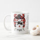 Crête de famille de Pugh comprenant l'origine et la signification du nom de Pugh sur une tasse en céramique. Nous avons 1000's des crêtes (manteau des bras). Si nous n'avons pas votre manteau de bras sur notre site de Zazzle nous faisons savoir et nous serons heureux de l'ajouter. Pour information envoyez-nous chez heraldry505@hotmail.com ces crêtes et l'information peut être employée sur tous les tasses et steins de Zazzle.
