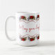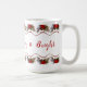 Les couleurs blanches et rouges sont audacieuses et fraîches pour les vacances. Cette tasse a une bordure de guirlandes de poinsettia rouge vif sur le dessus et le fond. Un message amusant : "Que vos journées soient joyeuses et brillantes !" Profitez de votre café", et partagez-en un pour un ami.
