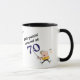 Cette tasse fait un cadeau mignon pour quiconque tourne le gros 70. Il présente votre texte personnalisé en texte stylisé bleu et noir. Actuellement, il dit "Toujours mettre" autour de 70". Un golfeur de bande dessinée prend un coup de fouet à sa balle sous le texte. L'image et le texte sont de chaque côté, avec votre nom ou autre texte personnalisé au milieu. Drôle ! *Cette conception utilise l'image © Graphics Factory.com*