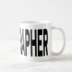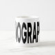 Coffee mug displays typography featuring the word RADIOGRAPHER in bold black lettering. A gift for radiographers, x ray technologists, and radiography students who take pride in the profession.