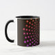 Stars in rainbow colors, spiral around a clear center point on black background. Small stars in center to larger stars at outer edge.