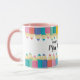 Un cadeau merveilleux pour votre professeur de classe préférée. Des crayons colorés bordent la tasse de café avec le nom personnalisé des enseignants en caractères de script moderne.