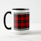 Tasse à café dans le tartan pour Clan Ramsay, Ramsey, et ses septs, y compris Dalhousie. Motif écossais en plaid noir et rouge de 1842, aux accents blancs.